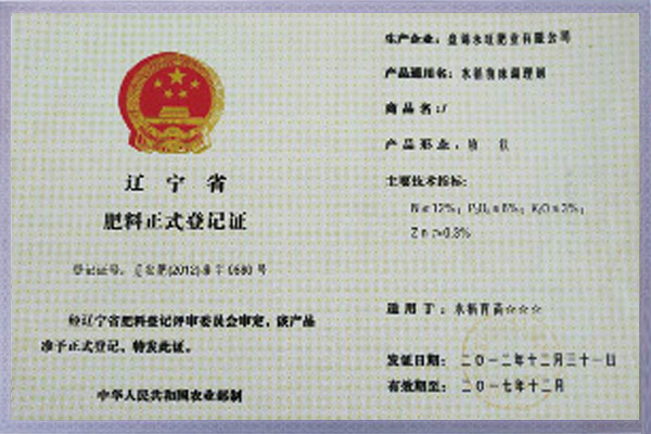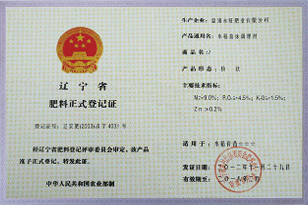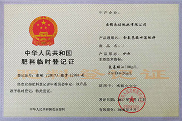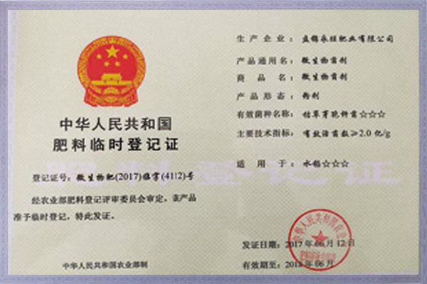 肥料正式登記證